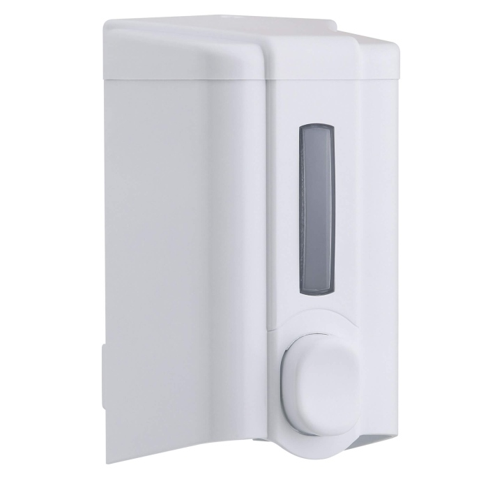 Ergonomiczny i ekonomiczny podajnik do mydła. Dozownik posiada wygodny wizjer do kontroli ilości mydła.
