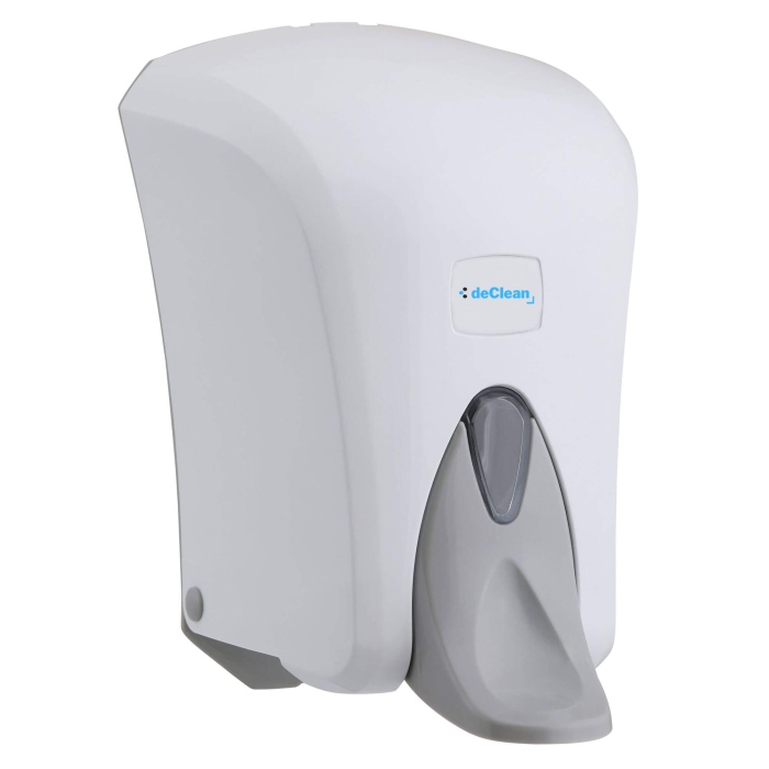 Nowoczesny w białym kolorze podajnik do mydła. Dozownik posiada wygodny wizjer do kontroli ilości mydła.