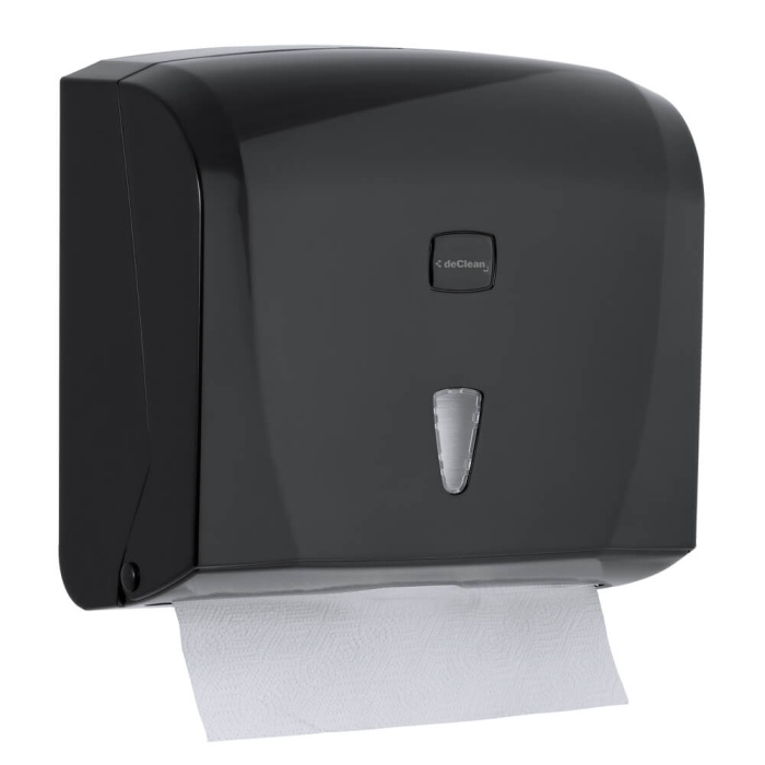 Nowoczesny ergonomiczny pojemnik na ręczniki papierowe składane ZZ,V. Wyciągnięcie jednego ręcznika powoduje wysunięcie następnego. Pojemnik wykonany z tworzywa sztucznego ABS. Posiada okienko do kontroli ilości ręczników w pojemniku Zamykany na plastikowy kluczyk. Montowany do ściany za pomocą kołków rozporowych (w zestawie)