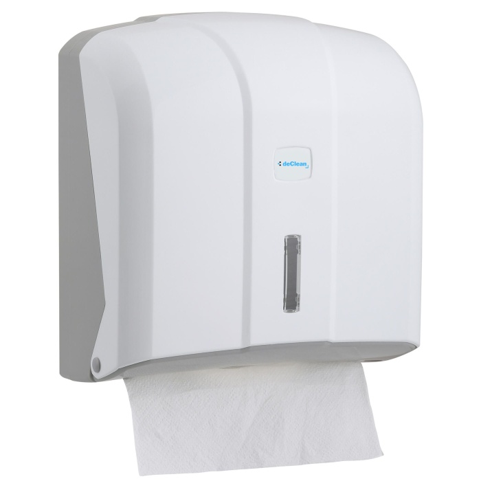 Nowoczesny ergonomiczny pojemnik na ręczniki papierowe składane ZZ,V. Wyciągnięcie jednego ręcznika powoduje wysunięcie następnego. Pojemnik wykonany z tworzywa sztucznego ABS. Posiada okienko do kontroli ilości ręczników w pojemniku Zamykany na plastikowy kluczyk. Montowany do ściany za pomocą kołków rozporowych (w zestawie)