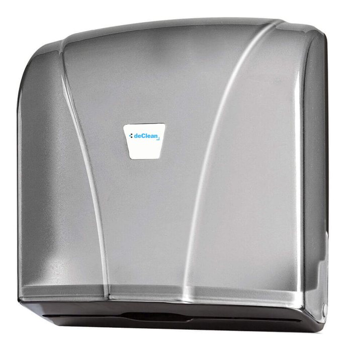 Ekonomiczny dozownik na ręczniki papierowe składane ZZ,V. Wyciągnięcie jednego ręcznika powoduje wysunięcie następnego. Pojemnik wykonany z tworzywa sztucznego ABS, posiada transparentną obudowę przez którą widoczna jest ilość ręczników. Zamykany na plastikowy kluczyk. Montowany do ściany za pomocą kołków rozporowych (w zestawie)