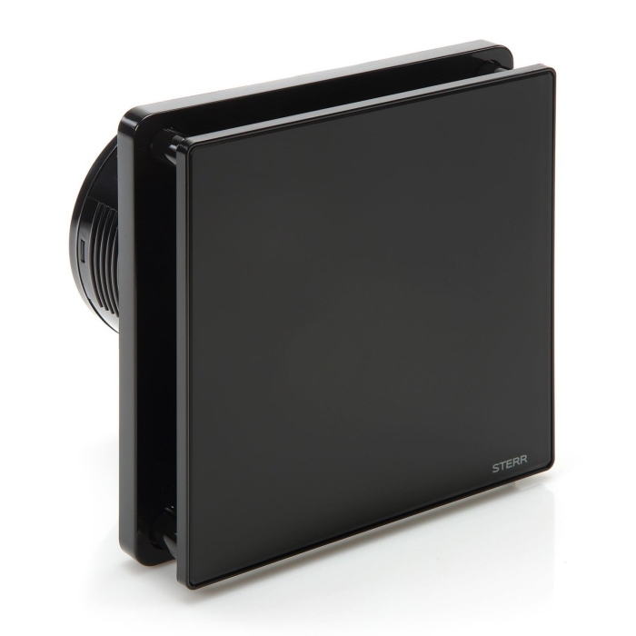 Łazienkowy wentylator z higrostatem i zaworem zwrotnym. Panel przedni ze szkła. Kolor czarnym. Elegancki i nowoczesny wygląd. Cicha praca. Łatwość montażu.